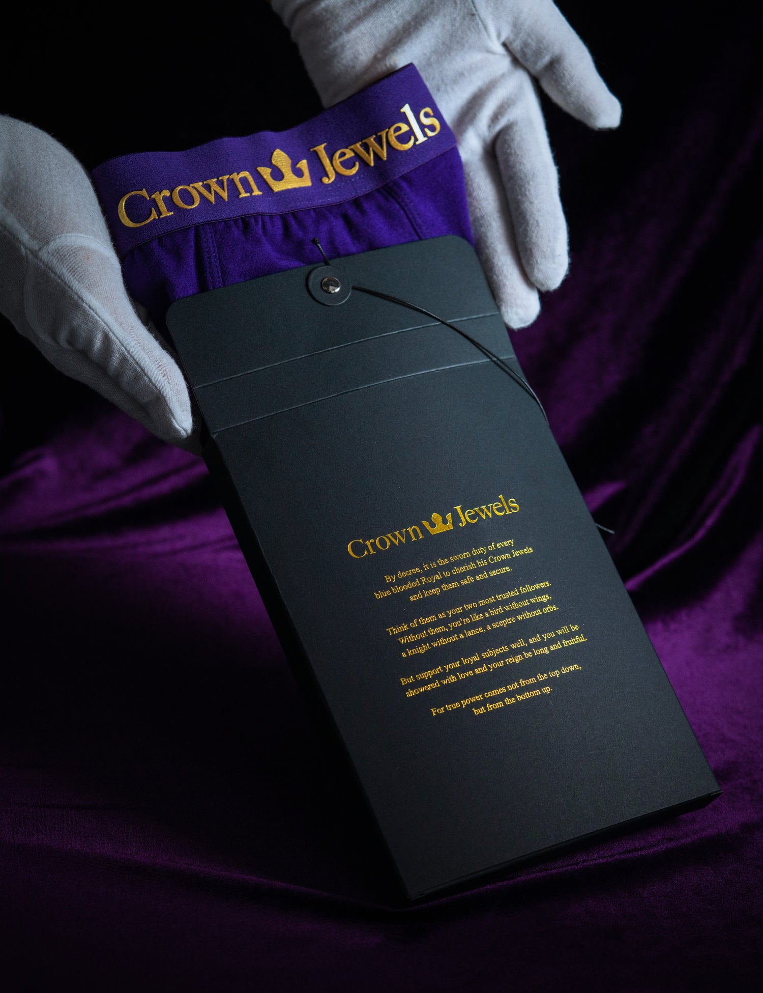 By decree, it is the sworn duty of every blue blooded Royal to cherish his Crown Jewels and keep them safe and secure. Think of them as your two most trusted followers. Without them, you’re like a bird without wings, a knight without a lance, a sceptre without orbs. But support your loyal subjects well, and you will be showered with love and your reign be long and fruitful. For true power comes not from the top down, but from the bottom up.
